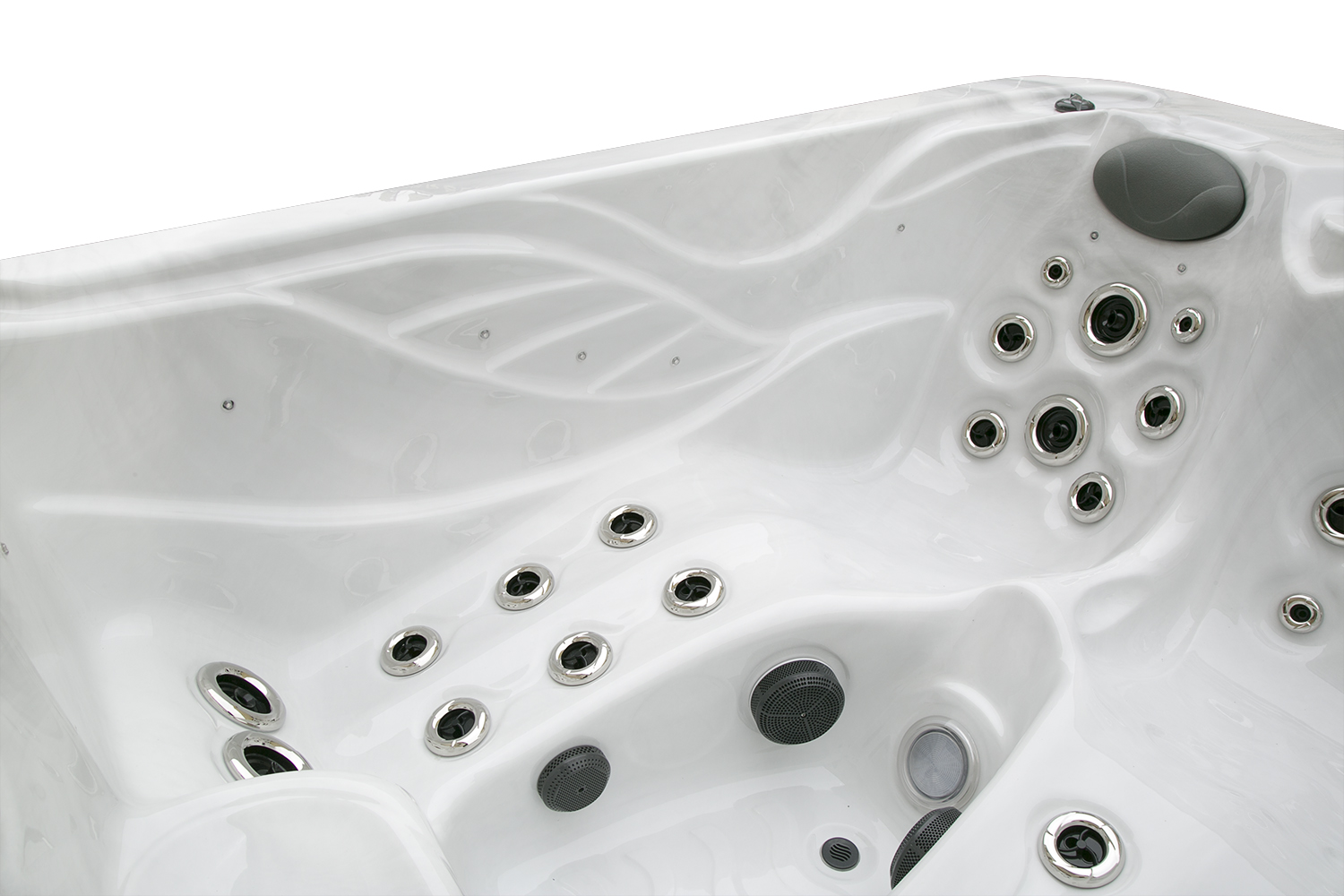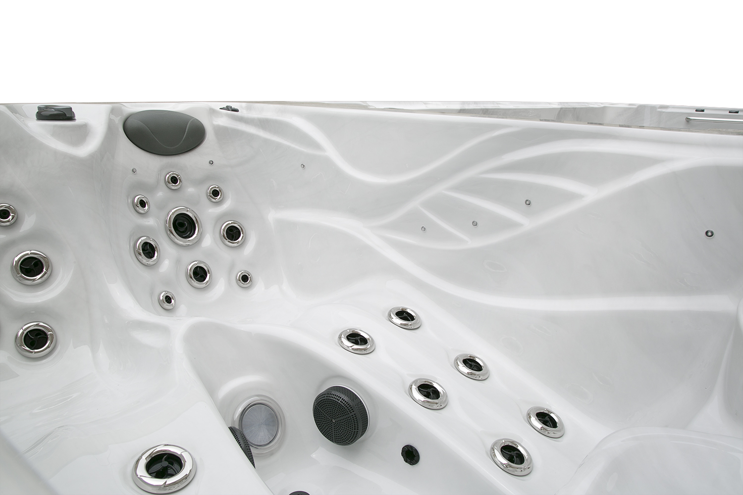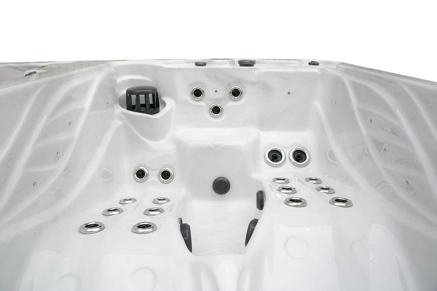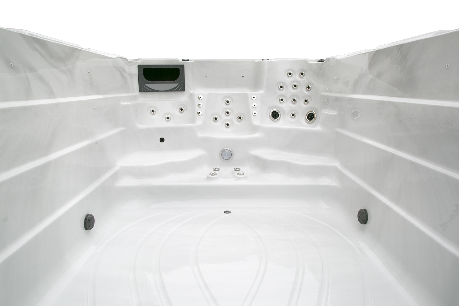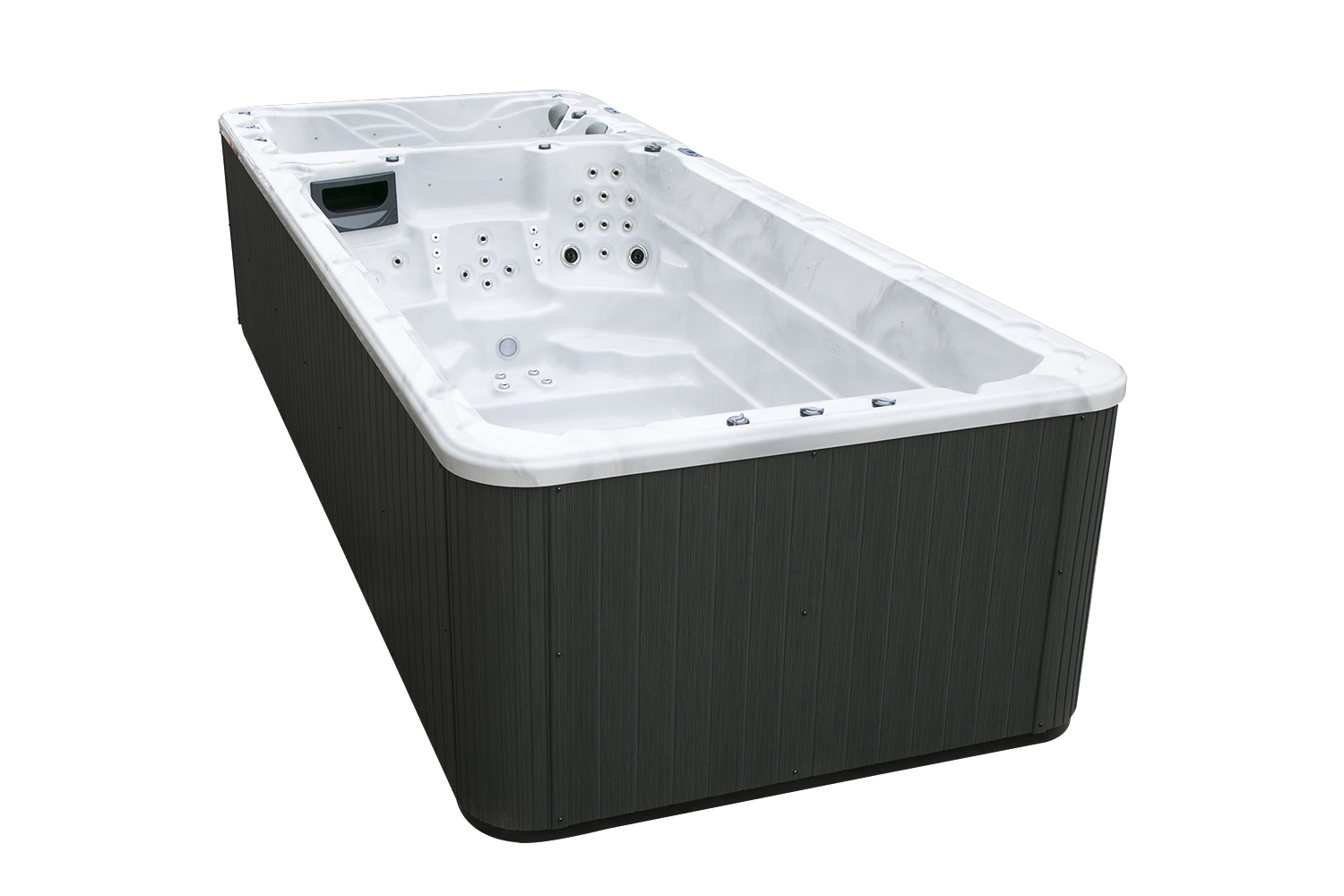 Два гидромассажных насоса по 1,5 кВт в сочетании с 76 форсунками обеспечивают интенсивный массаж и эффективную гидродинамику в спа-зоне. Мощный водяной насос на 2,9 кВт и форсунки противотока нового поколения создают идеальные условия для плавательных тренировок в главной части бассейна.